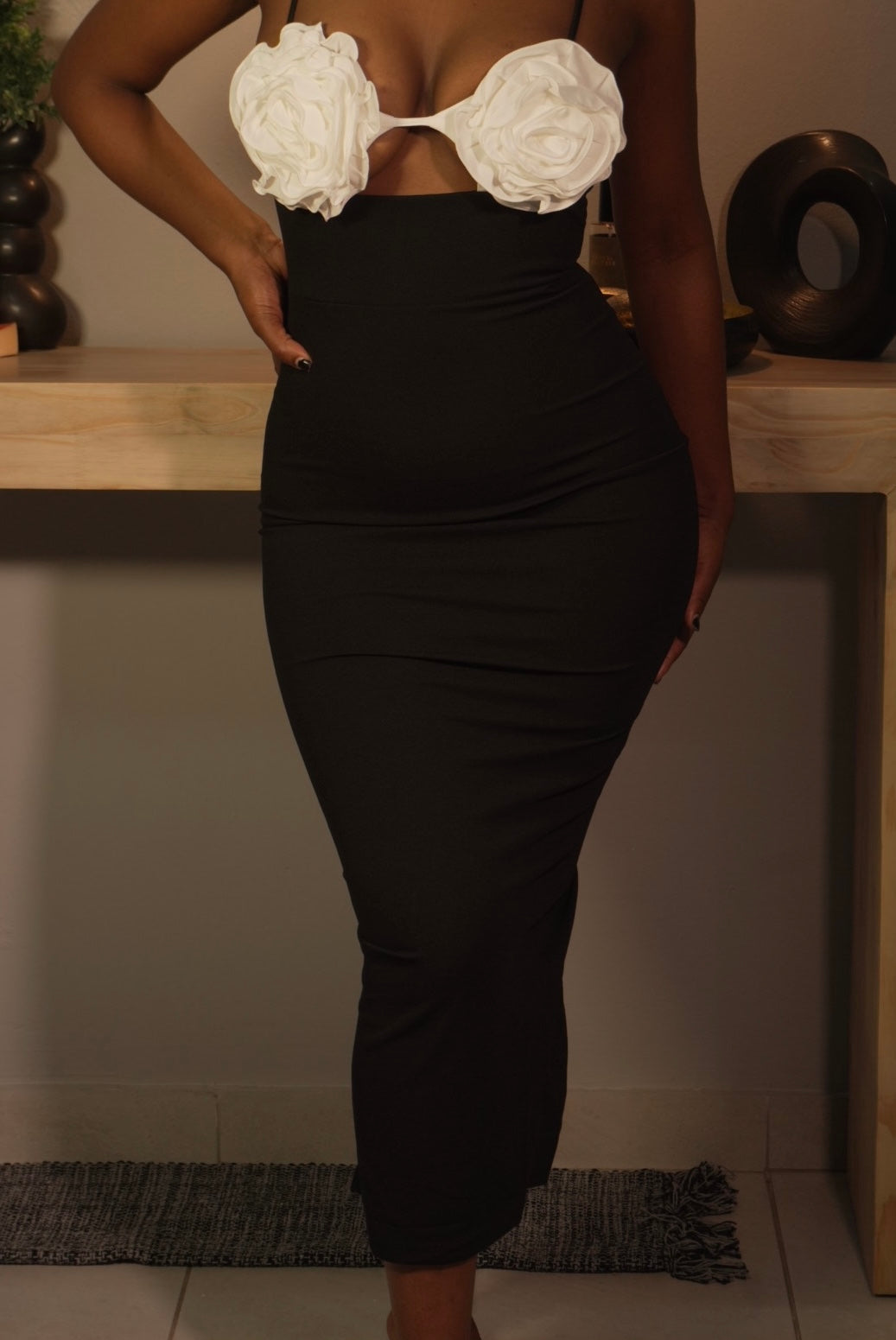 The Flower Girl dress is expertly designed to highlight your natural curves while embodying timeless elegance. Made from premium-quality fabric, it ensures a comfortable and flattering fit that moves with you. The dress features intricate white floral embroidery delicately placed on the breast area, lending a refined feminine touch. Its striking contrast between the sleek black material and the detailed white flowers creates a sophisticated yet bold aesthetic. Ideal for evening events, date nights, or special occasions, this dress offers a perfect balance of charm and confidence to help you stand out with grace.